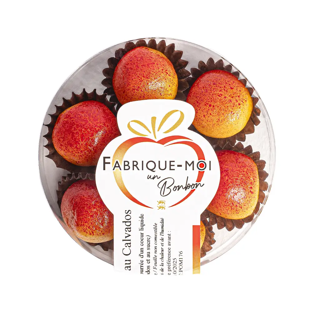 Notre spécialité ! Un cœur liquide au calvados de Normandie enrobé de pâte d’amande maison. Cette confiserie unique et surprenante vous fera découvrir des sensations inédites. Croquez cette friandise et découvrez un cœur de Calvados liquide (en savoir plus sur les pommes au Calvados).